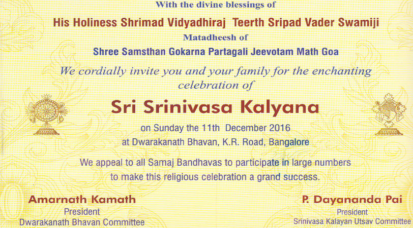 | Time : 8.30 am - 11.30 am - Sri Srinivasa Kalayanotsav |